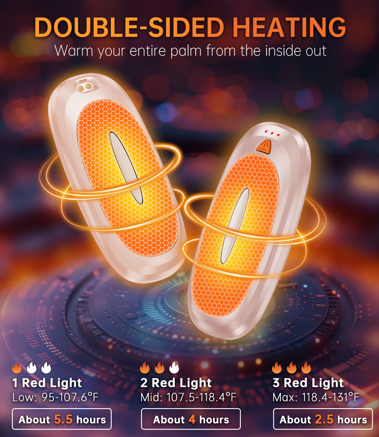 - Double-sided innovation, all-round warmth - Tydse hand warmer double-sided heating technology ensures even heat distribution and perfect fit. From fingertips to palms, every inch of skin can feel the warm care; ultra-thin and light, easy to carry, whether held in the hand or put in the pocket, it can provide comprehensive and lasting warmth; breaking the limitations of traditional single-sided heating, bringing a new comfortable experience to your hands